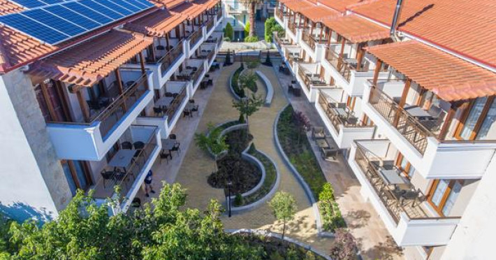 Apanemia Aparhotel -by Flegra Hotels- is located in the cosmopolitan village of Pefkohori in Kassandra, enjoying a privileged location in a quiet neighborhood away from the crowded center. Within short walking distance from the busiest pedestrian road, where most bars and restaurants are located, and only a few minutes away from the famous beaches of Toroneos Gulf, Apanemia apartments are situated in the upper town, very close to the traditional old square. It consists of 40 brand new, modern decorated and fully equipped with kitchen apartments. The property was constructed in 2016, in a cozy and luxury design, while all 40 apartments are equipped with kitchen facilities and provide daily cleaning services. The two separate spaces of the apartments can accommodate up to five persons and can be the ideal option for couples, friends or families. All apartments come with separate bedroom, a living room with fully equipped kitchenette, satellite TV, safe box and Wi-Fi free of charge.Datorita dinamicitatii domeniului disponibilitatea ofertelor se modifica de la un moment la altul. De aceea ofertele sunt valabile in limita locurilor disponibile. Agentia nu este responsabila pentru eventualele neconcordante care pot aparea intre informatiile privind tarifele si alte detalii din site si informatiile primite in agentie. In aceste cazuri vor avea prioritate, intotdeauna, informatiile primite in agentie.