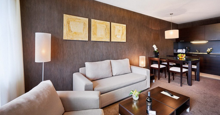 Toate camerele dispun de incalzire centralizata, chicineta complet utilata (plita, aspirator, espressor Lavazza, toaster, cuptor cu microunde, mini bar, fierbator apa, tacamuri/farfurii/cani/pahare), TV cu programe prin satelit, telefon, seif (gratuit), Wi-Fi (gratuit), mocheta, baie cu dus si cada, uscator de par, halat de baie si articole de toaleta gratuite. Nu toate camerele au balcon.