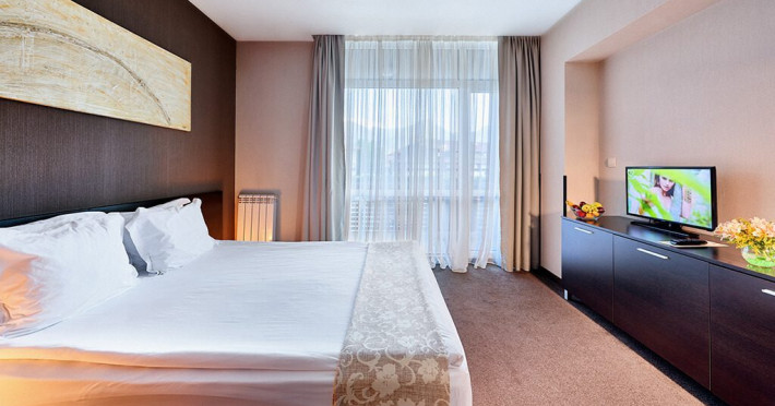 Hotelul pune la dispozitia oaspetilor sai urmatoarele facilitati: receptie, birou schimb valutar, room service (contra cost), Wi-Fi in intregul hotel (gratuit), camera de depozitare a echipamentelor de ski (gratuit), escape rooms (contra cost), sala de jocuri, sala de conferinte, 3 restaurante, bar, piscina BIO interioara incalzita (pentru adulti si copii), piscina cu sare de la Marea Moarta, camera cu sare pentru relaxare, shuttle la/de la telegondola la interval de 15/30 minute shuttle catre/dinspre centrul statiunii Bansko, masaj (contra cost), solar (contra cost), tratamente SPA (contra cost), baby cot (la cerere, gratuit), loc de joaca pentru copii (pe timpul sezonului de vara), kids club pentru copii (3-6 ani) cu ingrijitoare, gradinita (pe timpul sezonului de iarna, contra cost), jocuri electronice (contra cost), parcare exterioara (locuri limitate, gratuit), garaj (locuri limitate, contra cost). Hotelul accepta animale de companie cu o greutate de pana la 40 kg (necesita reconfirmare in prealabil, contra cost: se solicita depozit de 100 euro si taxa de dezinfectie: maxim 10 kg - 15 euro/zi, 10-40 kg - 20 euro/zi).