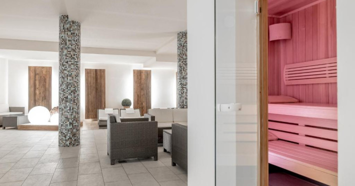 The spa area features an infrared cabin, a sauna, a steam bath, a relaxation room, a massage room, and a fitness room. It can be used free of charge.
