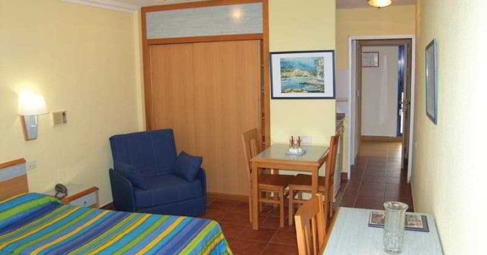 This aparthotel is situated on the south coast of the island of Gran Canarias. Guests will find points of interest in the immediate vicinity and it is only 200 m from the quiet sandy beach of San Agustin. It is some 40 km from Las Palmas Airport and 3.5 km from Playa del Ingles. Guest may enjoy all kind of services and facility. This establishment is perfect place to relax by the pool on one of our loungers and enjoy the sun. The studios are suitable for 2 people, child can sleep on the sofa bed, the bathroom is quite large and the small kitchen has all the amenities. The aparthotel does not perform any sport activities, however we can manage any activity that the customer wants. All these services are within a radius of 300 m. Guests may select their breakfast from a buffet and the midday and evening meals may be enjoyed from a set menu or chosen à la carte.Datorita dinamicitatii domeniului disponibilitatea ofertelor se modifica de la un moment la altul. De aceea ofertele sunt valabile in limita locurilor disponibile. Agentia nu este responsabila pentru eventualele neconcordante care pot aparea intre informatiile privind tarifele si alte detalii din site si informatiile primite in agentie. In aceste cazuri vor avea prioritate, intotdeauna, informatiile primite in agentie.