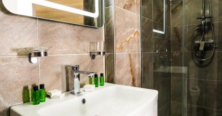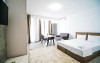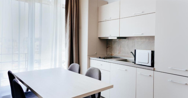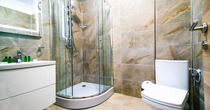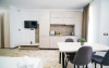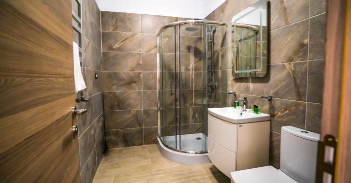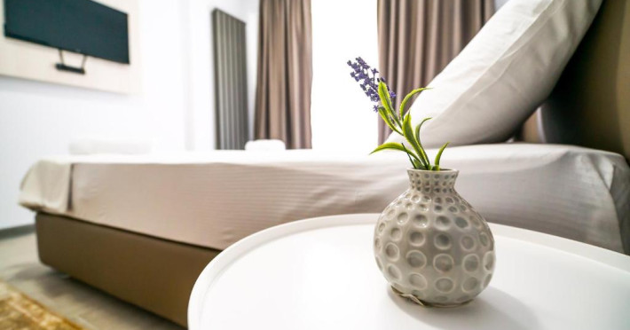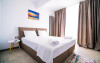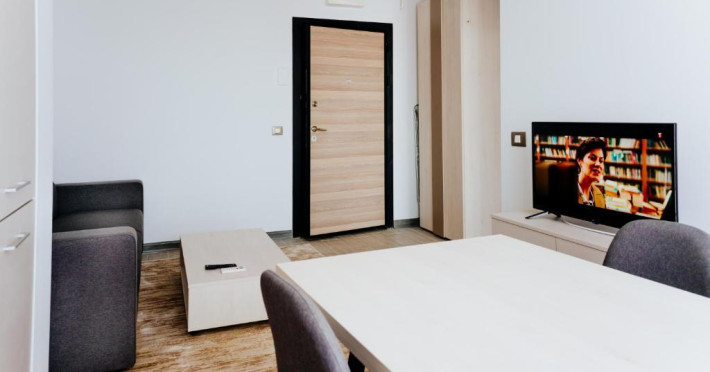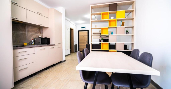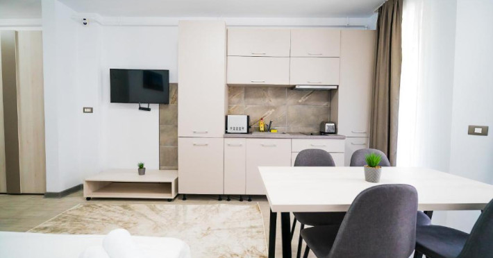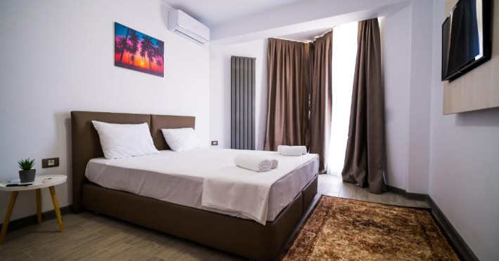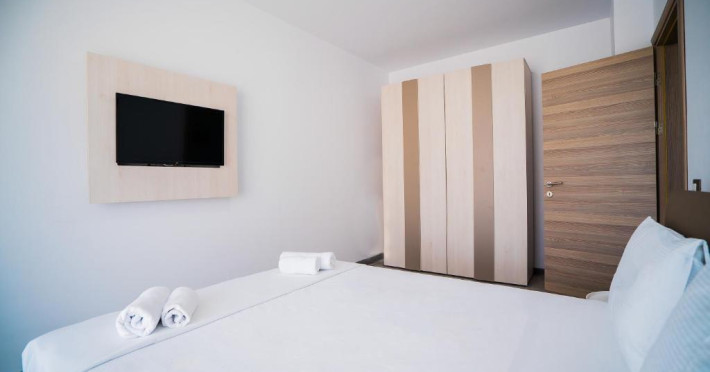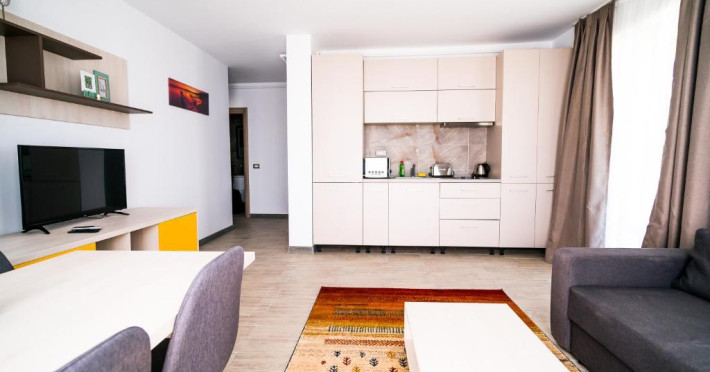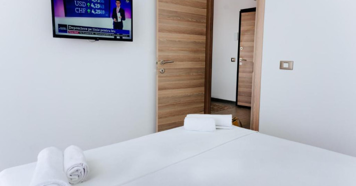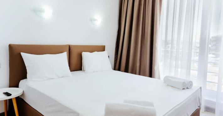 Facilități cameră dublă: pat matrimonial sau twin, baie proprie cu cadă sau duș, aer condiționat, televizor, frigider, chicinetă, cuptor cu microunde, ustensile de bucătărie, cană fierbător, plită pentru gătit, balcon.