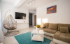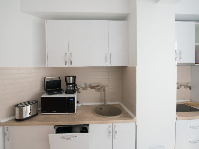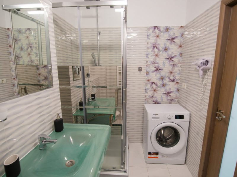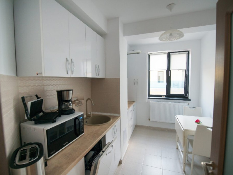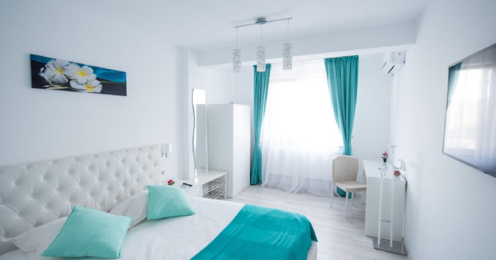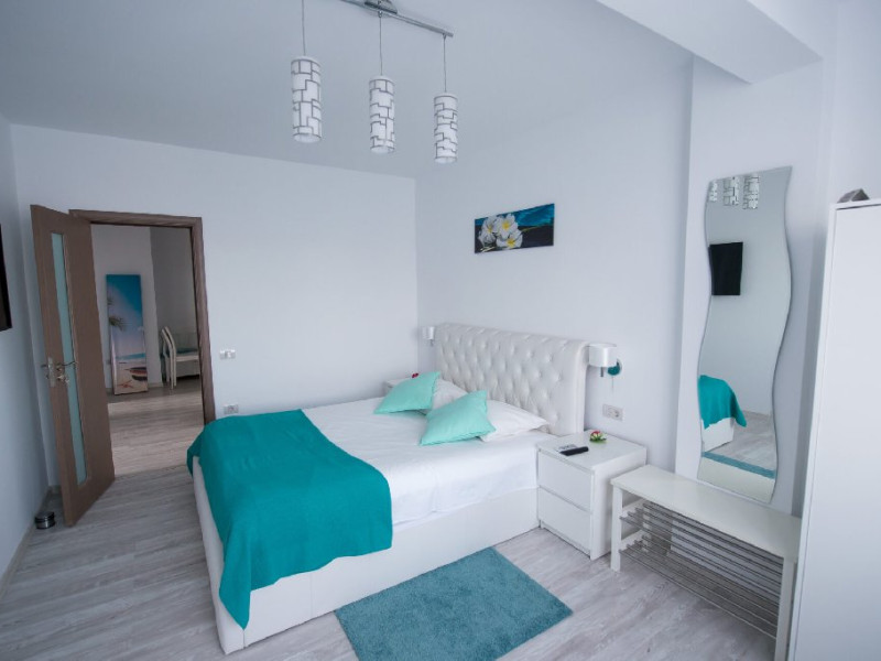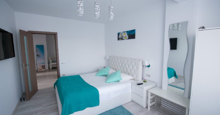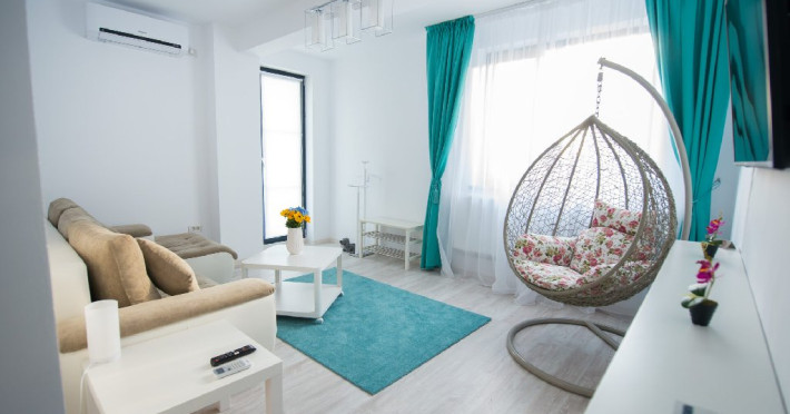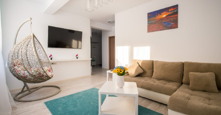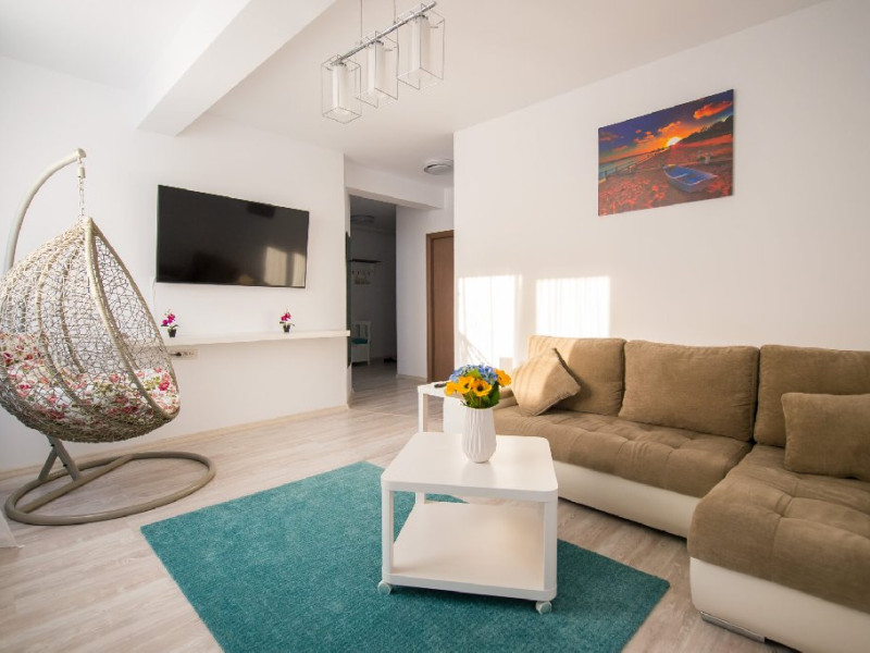 Apartamentul este complet mobilat si utilat modern. Dispune de un living cu canapea extensibila, un dormitor cu pat matrimonial si un dressing.