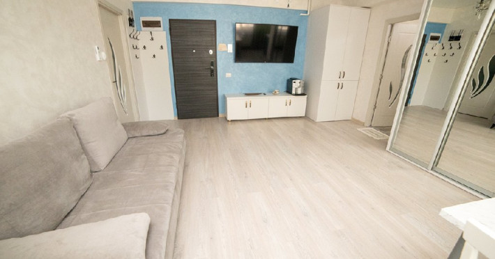 Mobilat si utilat modern, apartamentul dispune de un living spatios dotat cu o canapea extensibila, oferindu-va un loc confortabil pentru relaxare si socializare in timpul sejurului. Dormitorul este echipat cu un pat matrimonial si un dressing, asigurandu-va un somn odihnitor si spatiu generos pentru depozitarea obiectelor personale.