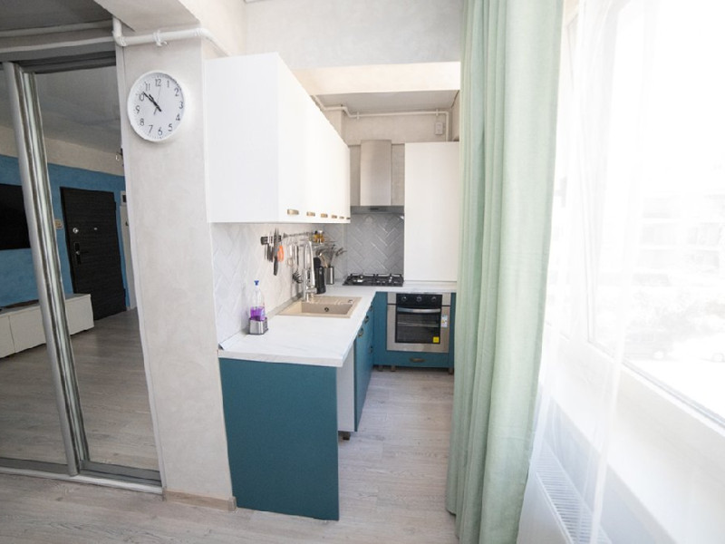 Bucataria este complet utilata, asigurandu-va toate facilitatile necesare pentru a pregati mesele in confortul propriului apartament. De asemenea, veti gasi o masina de spalat rufe, care va ofera posibilitatea de a avea grija de rufe in timpul sederii.