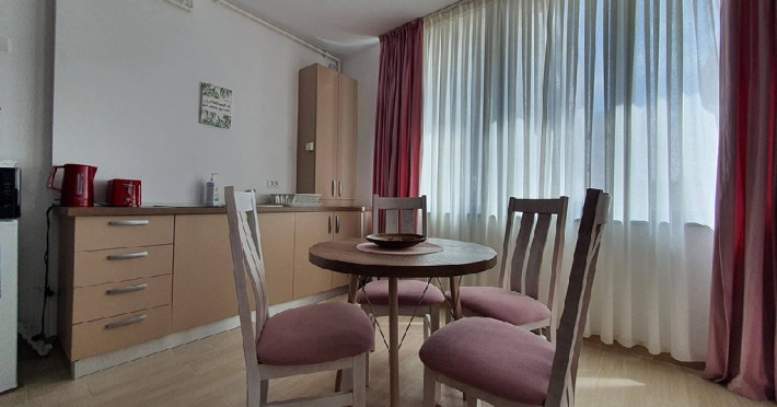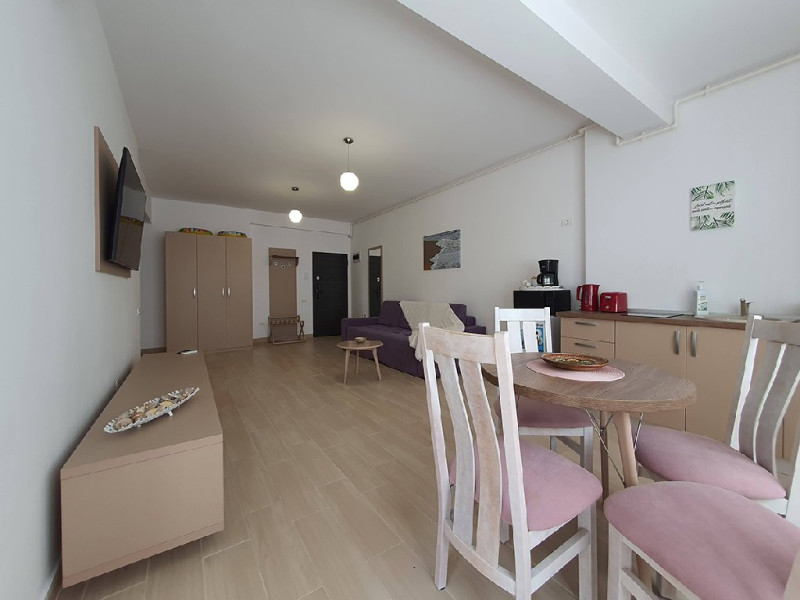 Apartamentul este mobilat si utilat modern, astfel incat sa va puteti bucura de o sedere confortabila pe litoralul romanesc. Dispune de un dormitor cu pat matrimonial, oferindu-va un somn odihnitor in timpul sejurului.