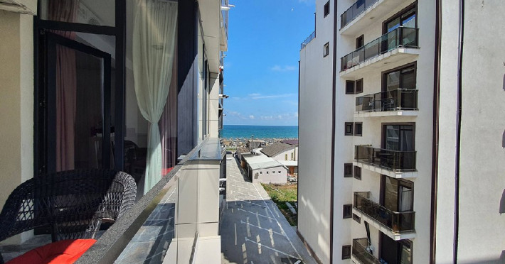 Apartamentul are, de asemenea, o terasa cu vedere laterala la mare, unde puteti savura o cafea sau o bautura racoritoare in timp ce va bucurati de privelistea frumoasa a marii.