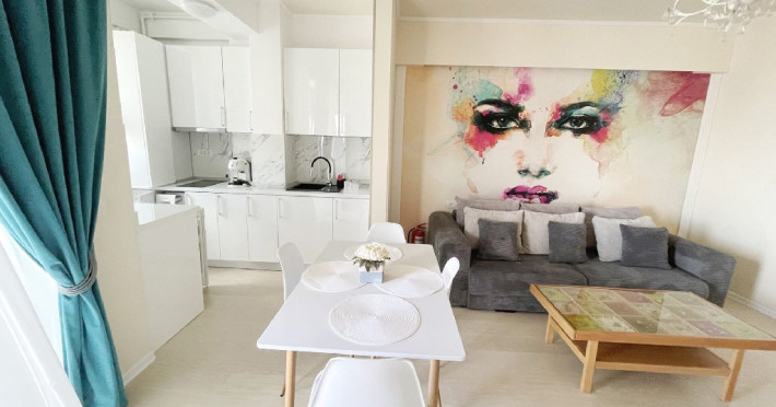 Mobilat si utilat modern, apartamentul dispune de un living spatios, dotat cu o canapea extensibila, oferind un loc confortabil pentru relaxare si socializare. De asemenea, exista un dormitor cu pat matrimonial.