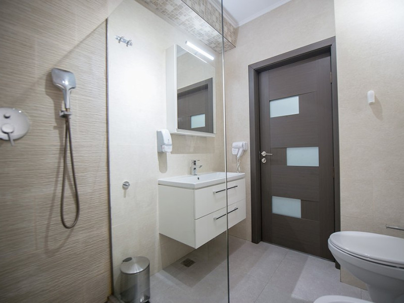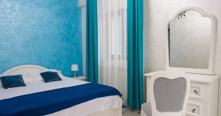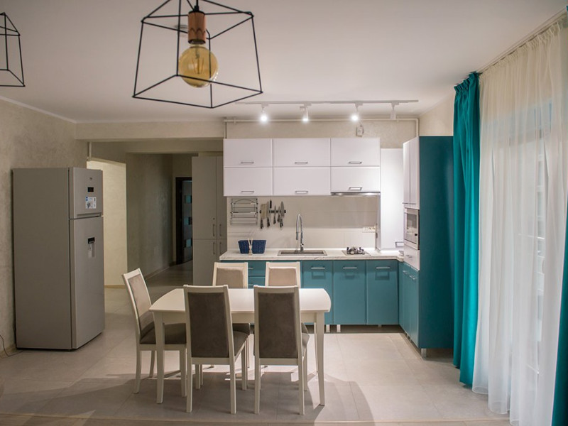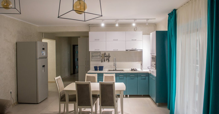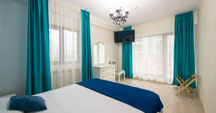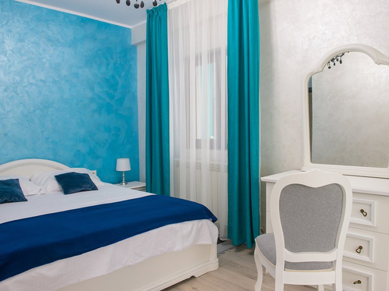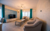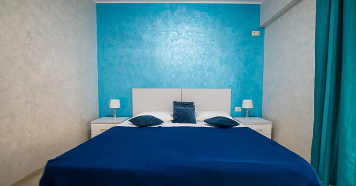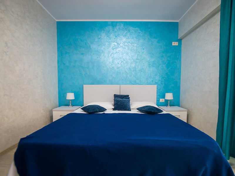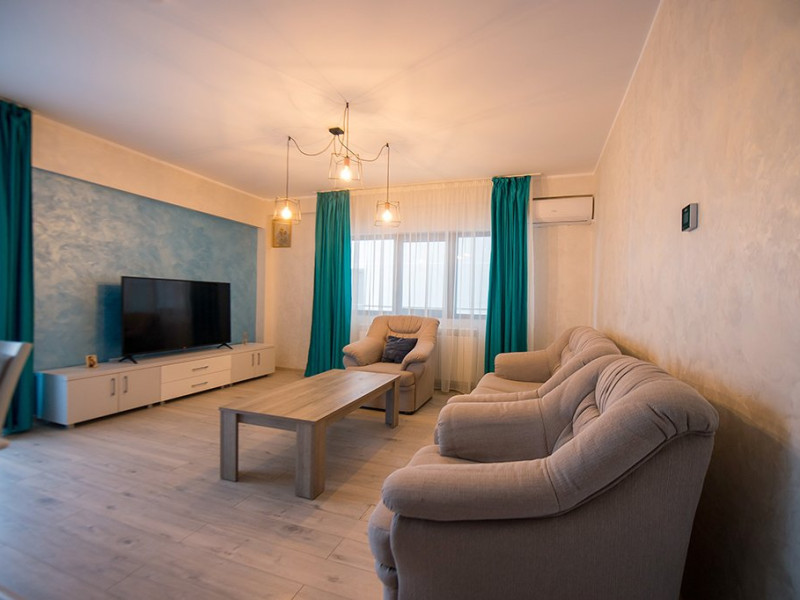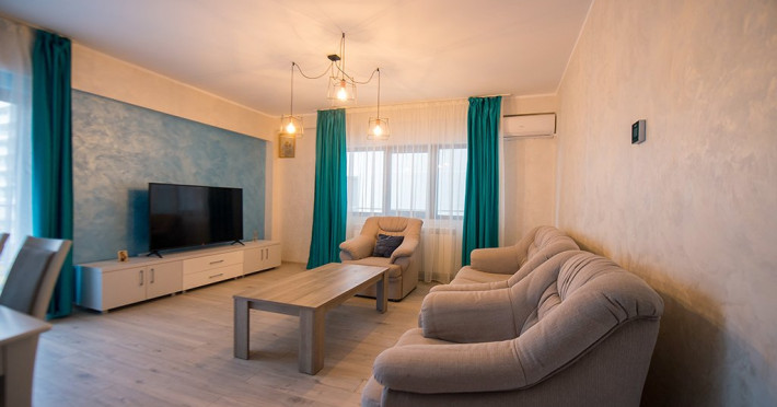 Apartamentul este complet mobilat si utilat modern. Livingul dispune de o canapea extensibila, in timp ce unul dintre dormitoare are doua paturi twin, potrivite pentru 2 persoane, iar celalalt dormitor are un pat matrimonial si un dressing. Pentru confortul maxim al oaspetilor, exista aer conditionat si 3 Smart TV-uri. Bucataria este complet utilata, iar baia dispune de o cabin de dus. De asemenea, apartamentul este dotat cu o masina de spalat rufe si ofera conexiune Wi-Fi gratuita. Pentru momente relaxante si admirarea privelistii catre mare, puteti utiliza terasa amenajata, accesibila din dormitor si living.