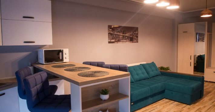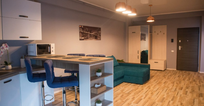 Apartamentul este complet mobilat si utilat modern, cu un living confortabil, dotat cu o canapea extensibila. Dormitorul are un pat matrimonial si un dressing. In plus, aveti la dispozitie aer conditionat pentru a va asigura confortul in timpul sejurului. Pentru divertisment, exista doua Smart TV-uri pentru a urmari filme sau seriale preferate.