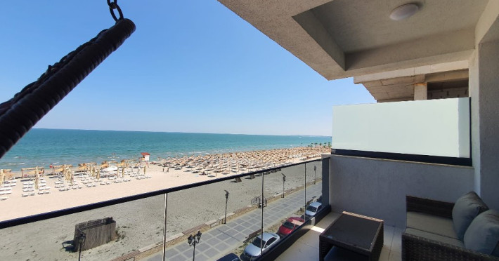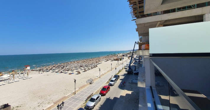 Terasa apartamentului ofera o vedere frontala la mare si este accesibila atat din living, cat si din dormitor, oferindu-va o oportunitate unica de a savura privelistea marii in timp ce va bucurati de o bautura racoritoare sau o cafea.