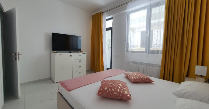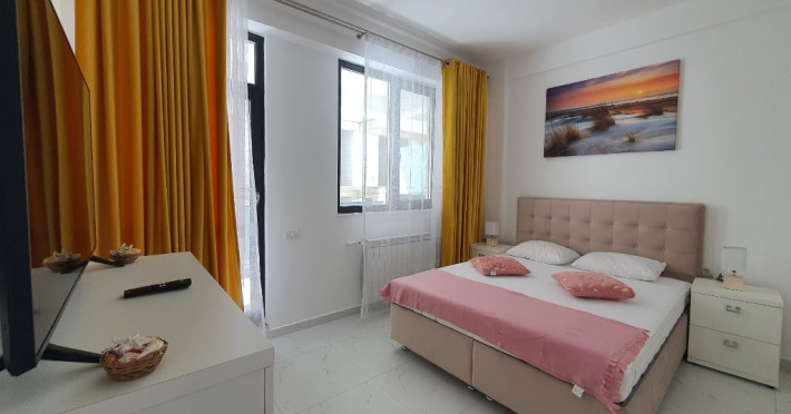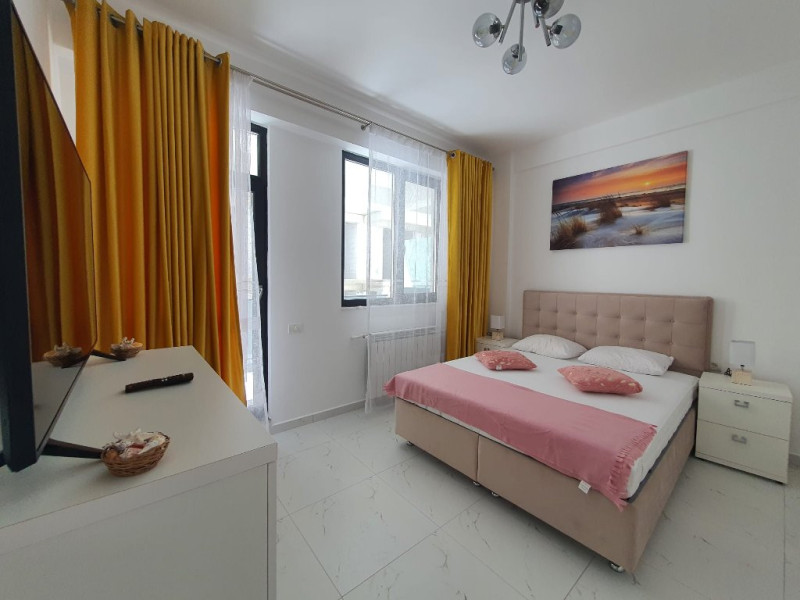 Apartamentul este complet mobilat si utilat modern, creand un mediu confortabil si functional pentru o experienta de neuitat pe litoralul romanesc.