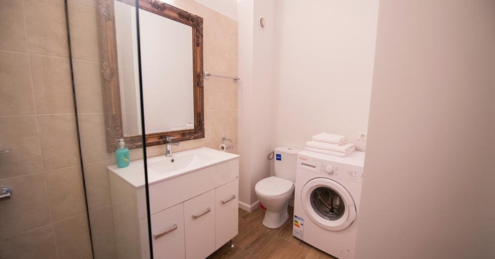 Apartamentul cu 2 camere este situat in apropierea plajei, la doar 250 de metri de distanta de plaja si promenada. Dispune de un dormitor si un living, oferind locuri de cazare pentru 4 adulti si 1 copil. De asemenea, exista un loc de parcare privat.Apartamentul se afla pe strada D21 nr. 2, etajul 1, in statiunea Mamaia Nord. Este complet mobilat si utilat modern, avand un living cu canapea extensibila, un dormitor cu pat matrimonial si doua smart TV-uri. Bucataria este complet utilata, baia are cabina de dus, iar pentru confortul oaspetilor, exista o masina de spalat rufe si conexiune Wi-Fi gratuita. Fiecare camera dispune de aer conditionat pentru a asigura o atmosfera placuta in timpul sederii. Pe langa acestea, terasa este mobilata, oferind un spatiu placut pentru relaxare.