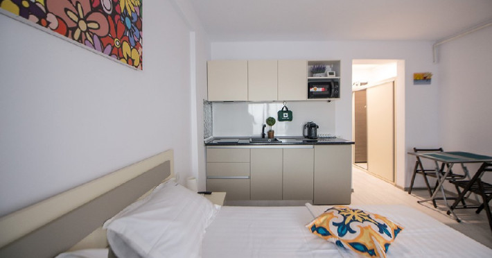 In bucatarie veti gasi toate utilitatile necesare, cum ar fi plita, cuptor si cafetiera, pentru a va bucura de preparatele preferate.