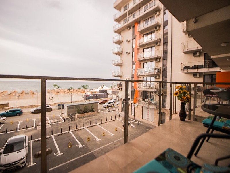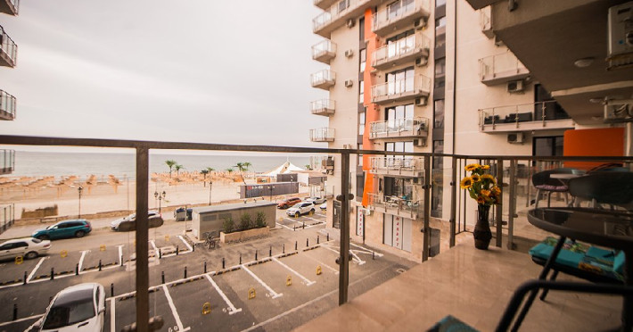 Studio cu vedere frontala la mare situat la doar 10 metri de plaja si promenada, in apropierea plajei SIGNATURE. Aceast studio poate gazdui 2 adulti si 2 copii si se afla in statiunea Mamaia Nord, pe strada Promenada, etajul 1, intr-un bloc cu lift.Studioul dispune de parcare privata si este amplasata in cladirea Beach Residence, oferind o experienta deosebita in timpul sejurului la mare.
