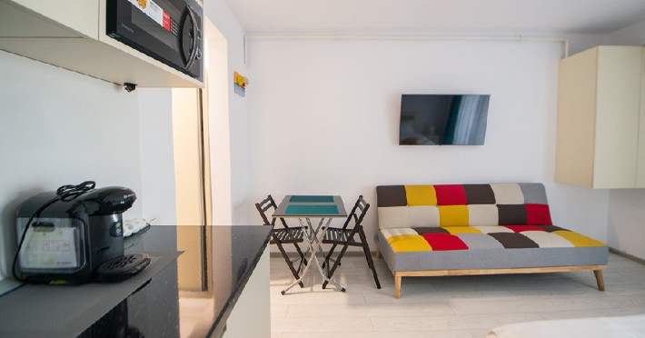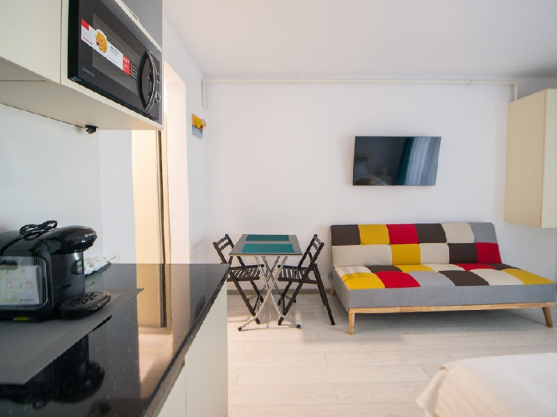 Baia este dotata cu o cabina de dus, iar pentru confortul dumneavoastra, garsoniera dispune de aer conditionat si Wi-Fi gratuit. De asemenea, aveti la dispozitie o masina de spalat.