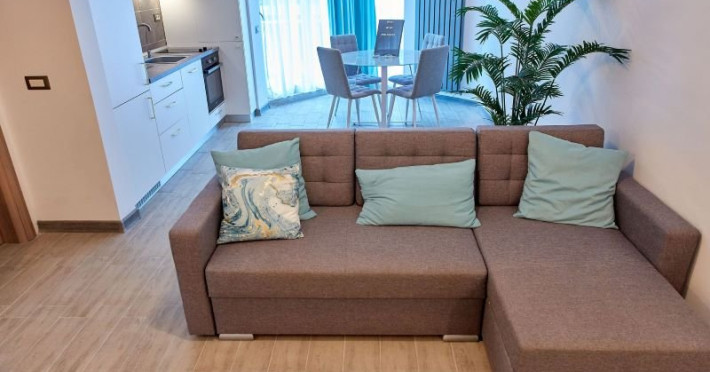Apartamentul Amma Beach Alezzi este format din dormitor cu pat matrimonial, o canapea extensibila, 2 smart TV, bucataria mobilata si utilata si balcon cu iesire din toate camerele.Suprafata de 62 mp.Capacitate de cazare 4 adulti si 1 copil.