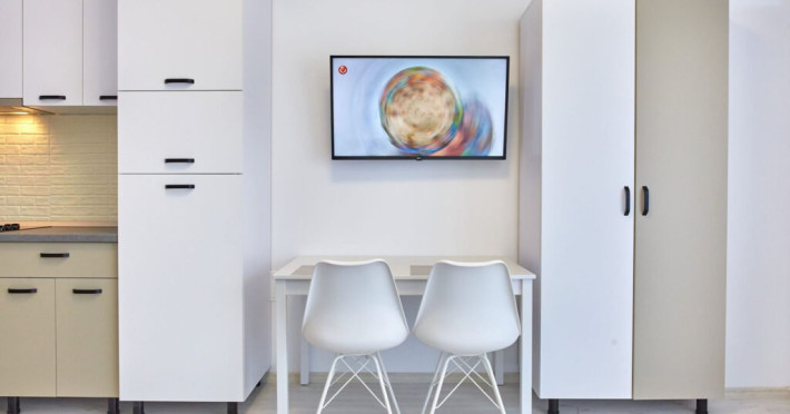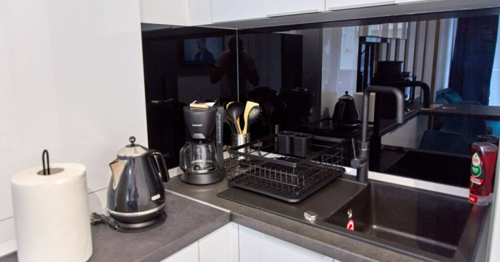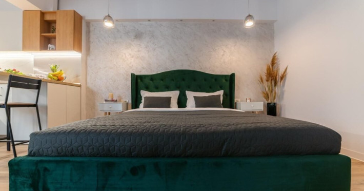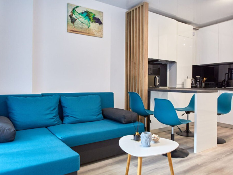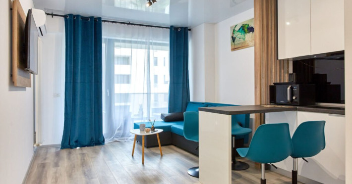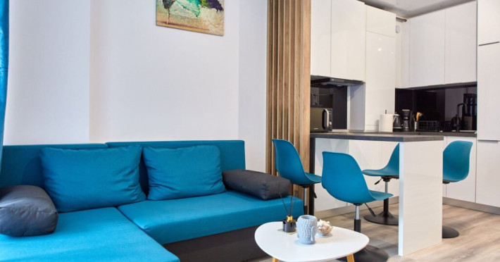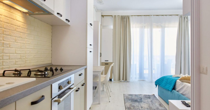 Apartamentul Seaside cu o suprafata de 55 mp se compune din living open space cu canapea extensibila , dormitor cu pat matrimonial si cu bucatarie dotata cu aragaz, cuptor , cuptor cu microunde , aparat de cafea, frigider , vesela, TV, wi-fi, aer conditionat, baie cu cabina de dus/cada, balcon cu vedere la mare.