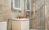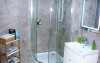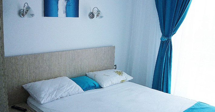 Fiind compus din doua camere, acces din fiecare pe terasa a cu vederea spre mare, apartamentul ofera capacitate de gazduire pentru 4 persoane, avand un pat matrimonial in dormitor si o canapea extensibila in living.