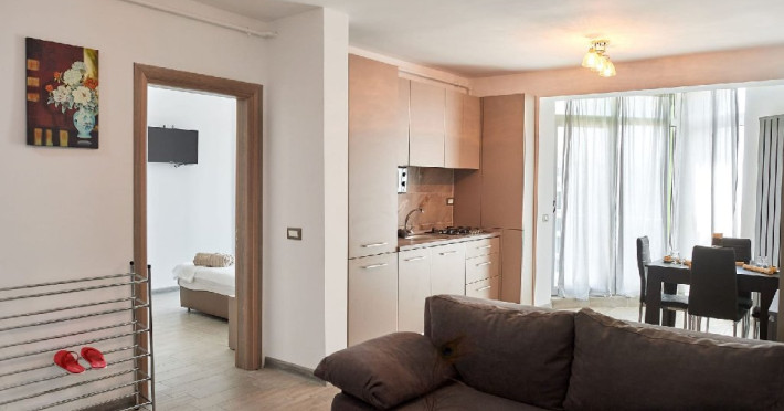 Alcatuit din 1 camere, va pune la dispozitie pat matrimonial, canapea extensibila, 1 smart TV. Bucataria este mobilata si utilata modern si nou.