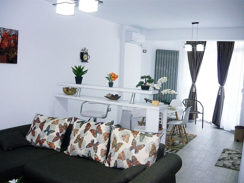 Studio Infinity Alezzi - compus din living open space cu canapea extensibila, cu zona de gatit si de luat masa, dormitor cu pat matrimonial si sifonier, baie cu cabina de dus, balcon, wifi, aer conditionat. Suprafata 40 mp. Adresa strada Prelungirea D13 nr. 6, Bl K, et. 2.
