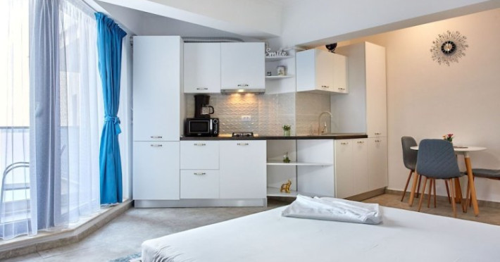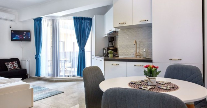 Apartamente Exterior is located in Constana. This apartment hotel is located in 10 km from the city center. You can take a walk and explore the neighbourhood area of the apartment hotel Mamaia Beach.Apartamente Exterior is located in Constana. This apartment hotel is located in 10 km from the city center. You can take a walk and explore the neighbourhood area of the apartment hotel Mamaia Beach.Take your pet with you. Pets are allowed. Accessible for guests with disabilities: the elevator helps them to go to the highest floors.Take your pet with you. Pets are allowed. Accessible for guests with disabilities: the elevator helps them to go to the highest floors..RON not included unspecified 50 per guest per stayDatorita dinamicitatii domeniului disponibilitatea ofertelor se modifica de la un moment la altul. De aceea ofertele sunt valabile in limita locurilor disponibile. Agentia nu este responsabila pentru eventualele neconcordante care pot aparea intre informatiile privind tarifele si alte detalii din site si informatiile primite in agentie. In aceste cazuri vor avea prioritate, intotdeauna, informatiile primite in agentie.
