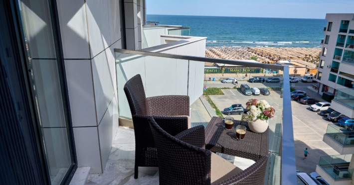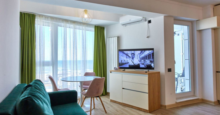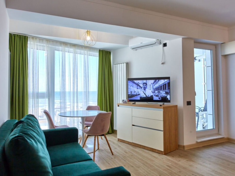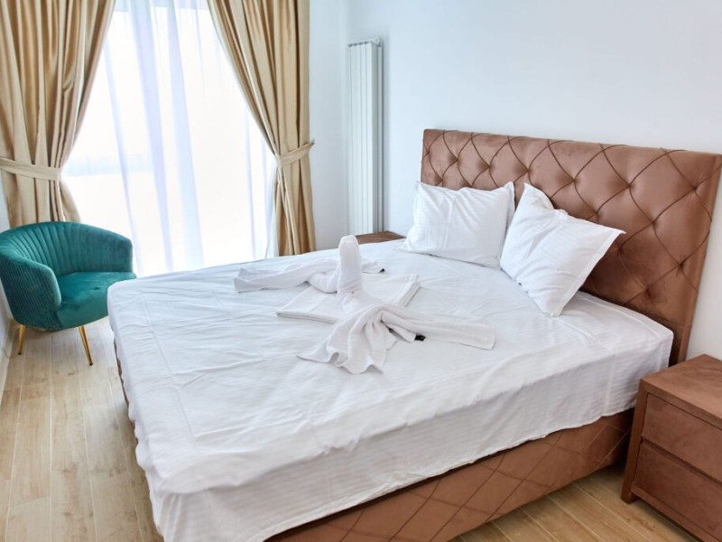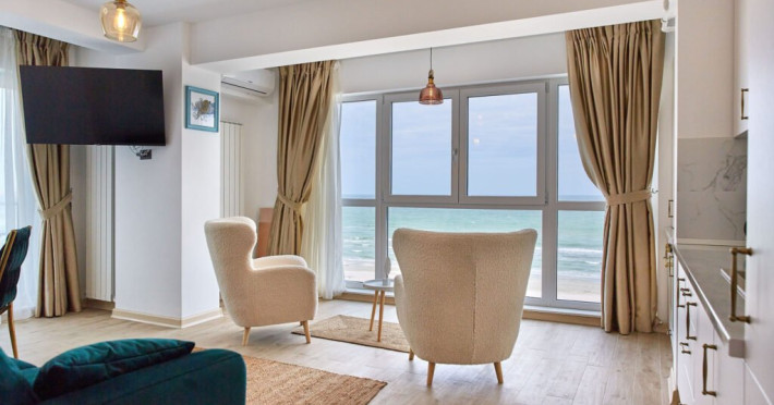 Apartament Atlantis Infinity Alezzi cu o suprafata de 82 mp este compus din living cu canapea extensibila, bucatarie open space echipata cu plita, microunde, hota, aparat de cafea, frigider, masina de spalat vase, doua dormitoare cu pat matrimonial, doua bai, tv, aer conditionat, internet. Adresa: Mamaia Nord, strada Promenada 85 bis, et. 4.
