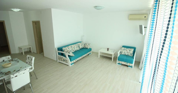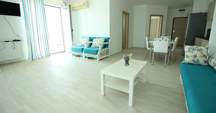 Apartament 2 camere: 1 living cu canapea extensibila si un dormitor cu pat matrimonial. Suprafata: 64 mp. Capacitate: 4 - 6 persoane.