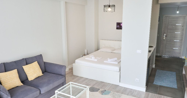 Fiind compus din 1 camere cu acces la balcon, Studioul Selena Onix are capacitatea de gazduire a 3 persoane fiind dotata cu un pat matrimonial si o canapea extensibila in living.