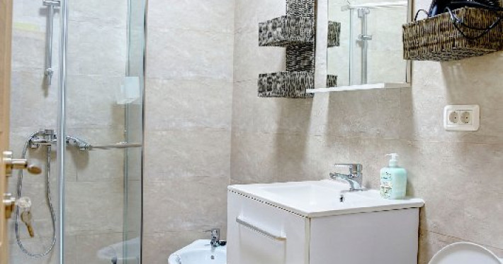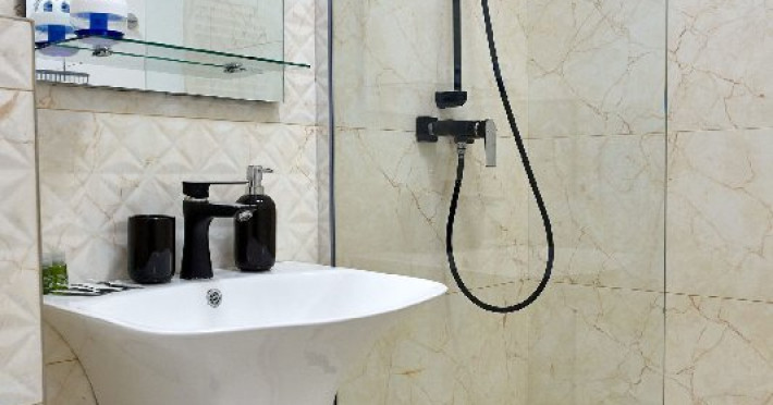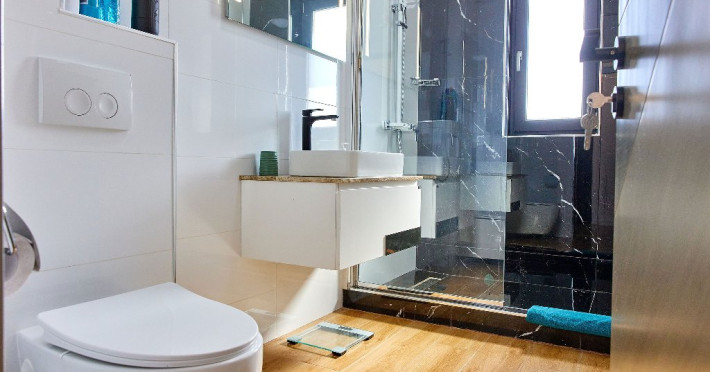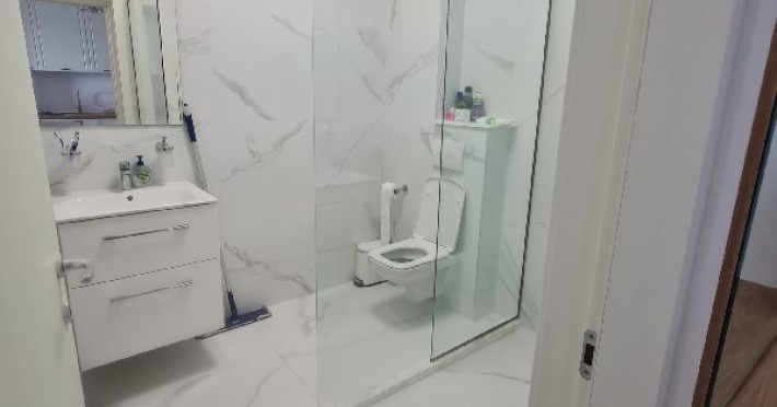 Reluati-va energiile intr-o baie spatioasa si moderna, dotata cu un dus walk-in elegant si toate facilitatile necesare pentru confortul dumneavoastra.