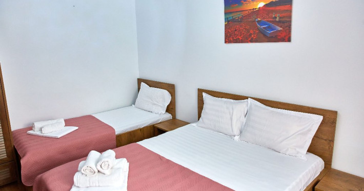 Bucurati-va de odihna deplina intr-un pat matrimonial extrem de confortabil, echipat cu lenjerii moi si perne pufoase pentru un somn linistit si odihnitor.