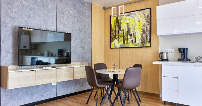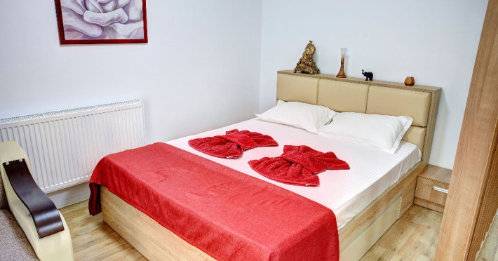 Va punem la dispozitie un apartament cochet unde se pot caza 4 persoane deoarece este dotat cu pat matrimonial in dormitor si o canapea extensibila in living, fiecare camera fiind dotat cu Smart TV si Wi-Fi de cea mai buna calitate la o viteza cat mai mare.