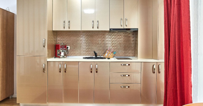 Gatiti cu usurinta intr-o bucatarie complet utilata, echipata cu plita, hota, aparat de cafea, fierbator si frigider, pentru a prepara cele mai delicioase mAencaruri.