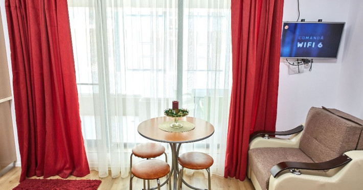 Balcon: Balconul, locul perfect pentru a te relaxa in serile de vara, este dotat cu o masa si doua scaune, creand astfel un colt intim unde poti savura cafeaua de dimineata sau citi o carte in linistea serii.