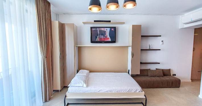 Camere: Studioul Panoramic Sea On este dotat cu 2 paturi matrimoniale putand astfel caza 4 persoane. Studioul este dotat cu aer conditionat, smart TV cu o gama larga de posturi si Wi-Fi, terasa cu TV, baie cu dus, living open space cu bucatarie. Bucataria este mobilata si utilata cu electronice si electrocasnice noi sporind astfel confortul casei cat si ale turistilor care ne trec pragul.