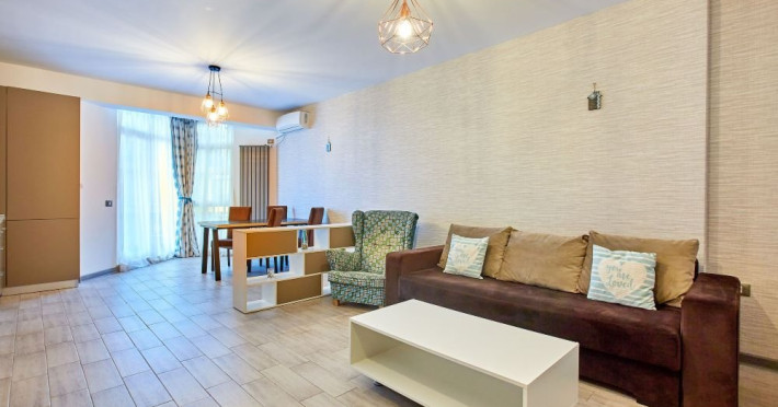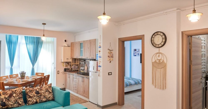 Apartament Amazon Alezzi - este format din living si dormitor. Livingul dispune de canapea extensibila, zona de luat masa, este open space cu bucataria completa utilata (aragaz, frigider, aparat de cafea, cuptor cu microunde), dormitorul este cu pat matrimonial, baie cu cabina de dus si masina de spalat,TV in ambele camere, wifi, aer conditionat, balcon. Suprafata 62 mp. Adresa strada D13 nr. 6D, Bl M, et 6.