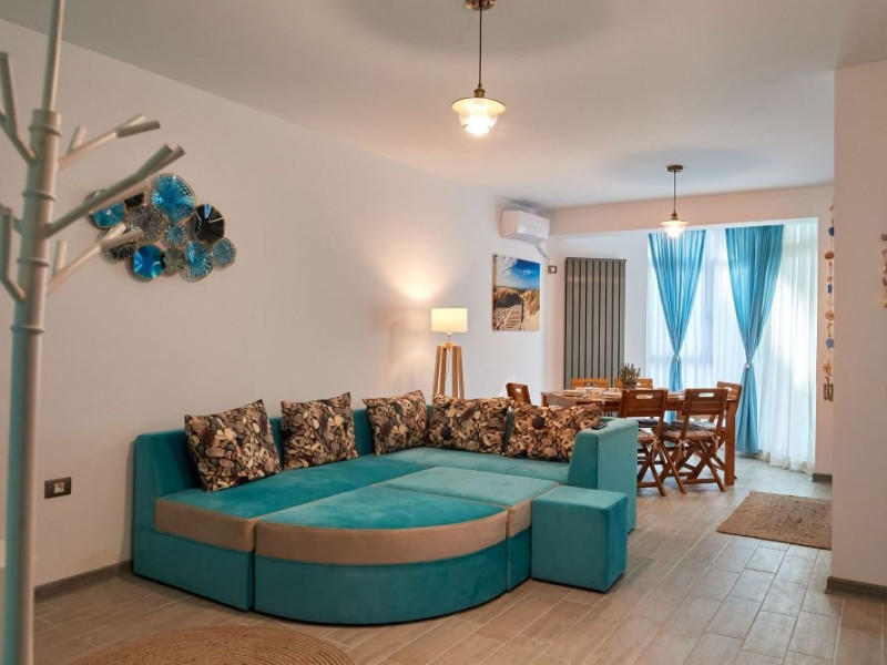 Apartament Coral Alezzi - este format din living si dormitor. Livingul dispune de canapea extensibila, zona de luat masa, este open space cu bucataria completa utilata (aragaz, frigider, aparat de cafea, cuptor cu microunde), dormitorul este cu pat matrimonial. TV in ambele camere, wifi, aer conditionat, balcon, baie cu cabina de dus si masina de spalat. Suprafata 62 mp. Adresa strada Prelungirea D13 nr. 6, Bl H , et. parter.