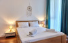Apartamentul este alcatuit din 2 camere spatioase unde se pot caza 4 persoane deoarece este dotat cu pat matrimonial in dormitor si o canapea extensibila in living avand accesibilitate din ambele camere la terasa cu vedere spre mare. Fiecare camera este dotata cu aer conditionat, smart TV si Wi-Fi de cea mai buna calitate. Bucataria este mobilata si utilata cu electronice si electrocasnice noi sporind astfel confortul casei cat si ale turistilor.