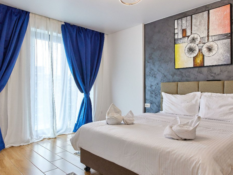Experimentati odihna deplina intr-un pat matrimonial extrem de confortabil, echipat cu lenjerii moi si perne pufoase.