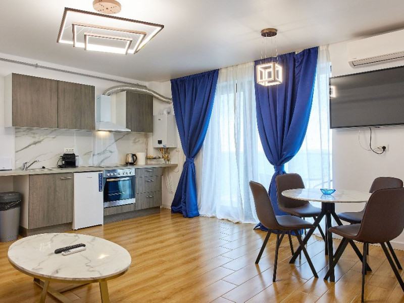 Relaxati-va in livingul open space, amenajat cu grija si design modern, care ofera un spatiu confortabil si primitor pentru intreaga familie.