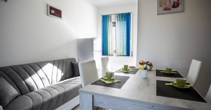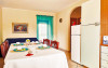 Apartamentele constau intr-o sufragerie mare, cu canapele duble, un dormitor cu un pat matrimonial, baie cu dus si chicineta cu aragaz si cuptor. Apartamentul dispune si de un balcon mare, dotat cu masa si scaune, excelent pentru o cina cu mancaruri specifice italienesti. In curtea din fata exista o zona de joaca pentru copii.