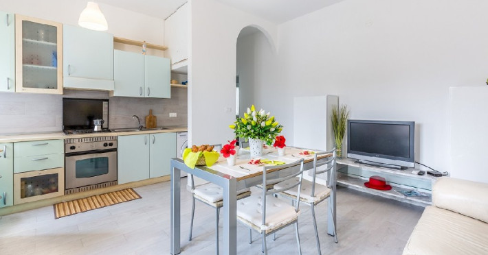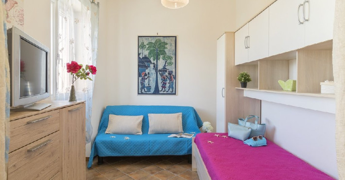 Apartamentele constau intr-o sufragerie mare, cu canapele duble, un dormitor cu un pat matrimonial, baie cu dus si chicineta cu aragaz si cuptor. Apartamentul dispune si de un balcon mare, dotat cu masa si scaune, excelent pentru o cina cu mancaruri specifice italienesti. In curtea din fata exista o zona de joaca pentru copii.