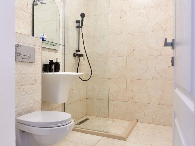 Baie: In baie, minimalismul si luminozitatea sunt cuvintele de ordine. Designul se axeaza pe functionalitate, cu o cabina de dus walk-in si finisaje care reflecta lumina, creand un spatiu aerisit si primitor.