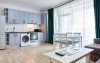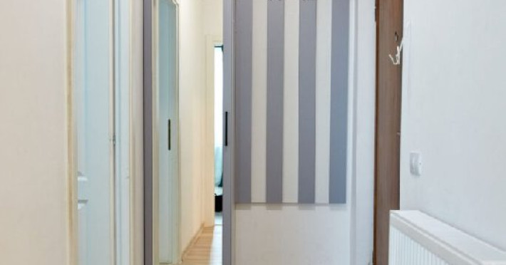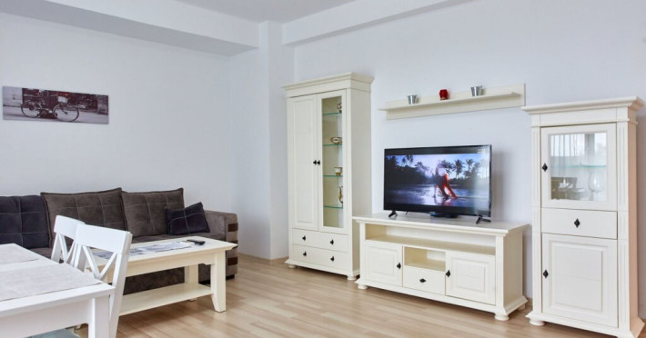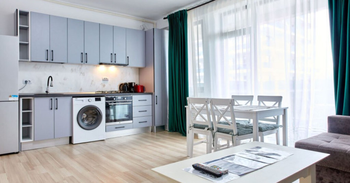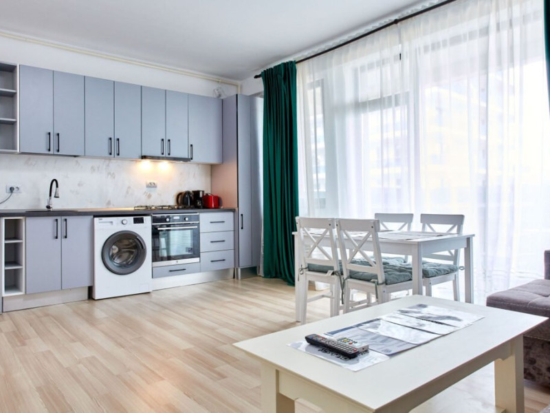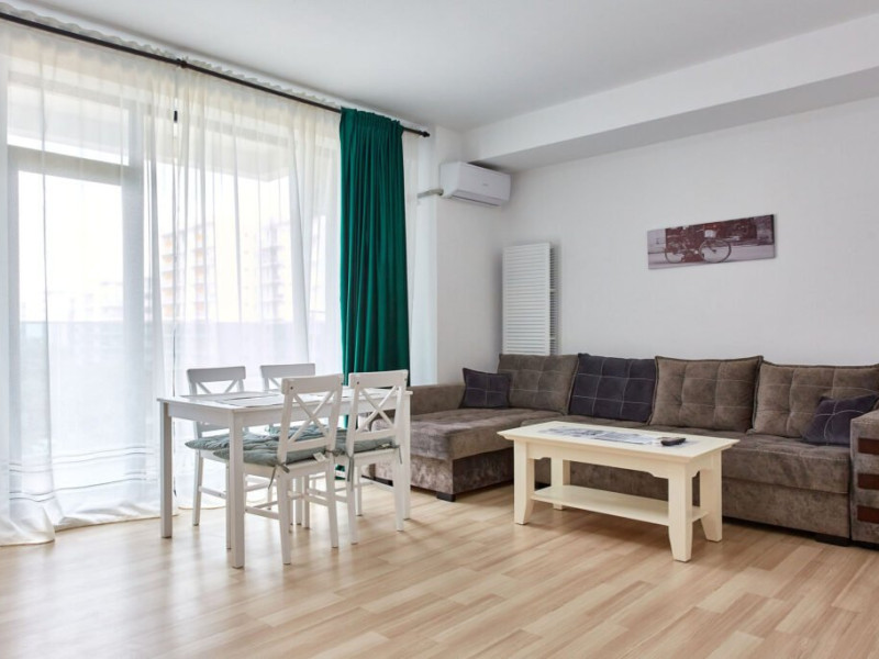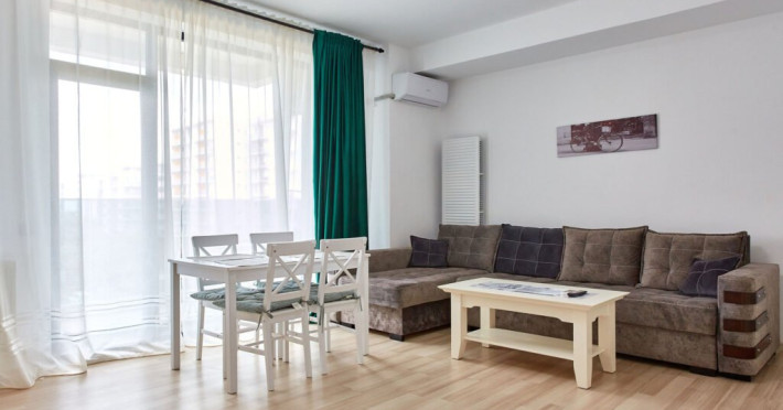 Apartamentul Solis Residence cu o suprafata de 50 mp este compus din living open space cu canapea extensibila, dormitor cu pat matrimonial, bucatarie dotata cu plita moderna , hota, cuptor cu microunde ,aparat de cafea, frigider, vesela, baie cu duC walk-in, tv, aer conditionat si balcon dotat cu mobilier.Adresa: strada D8 nr. 8.