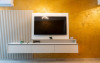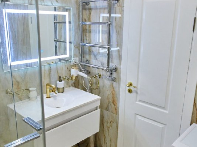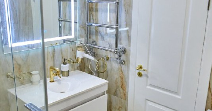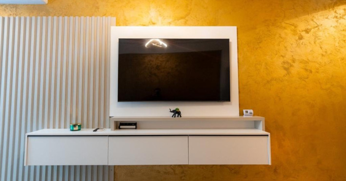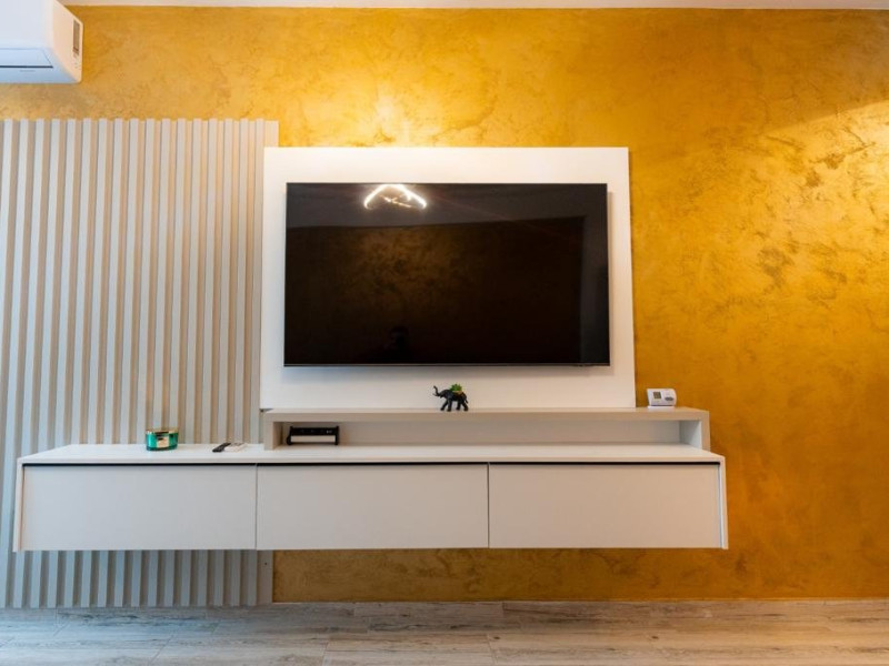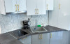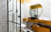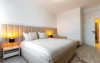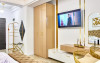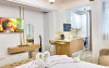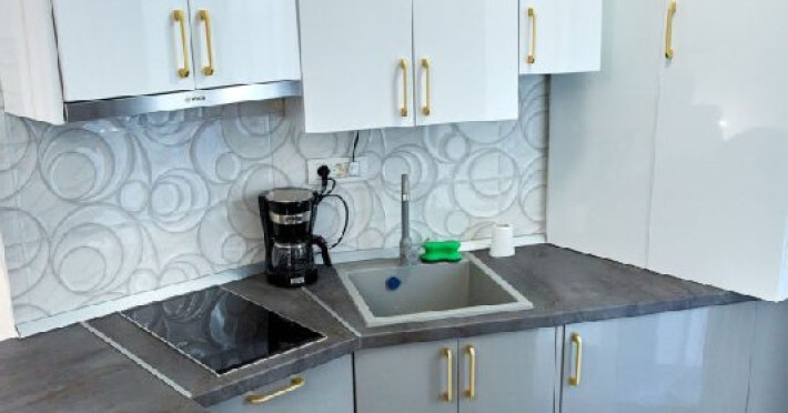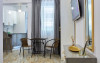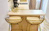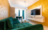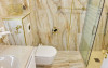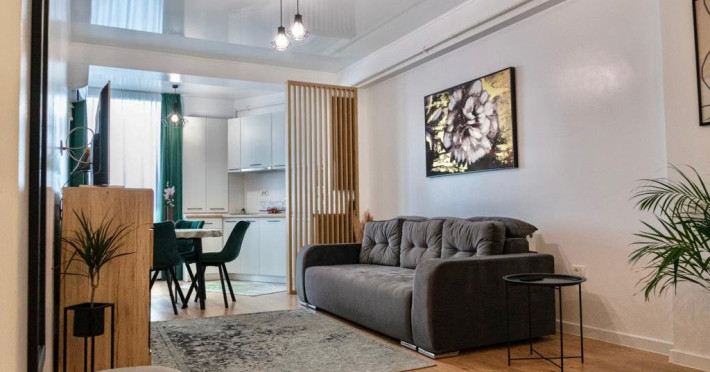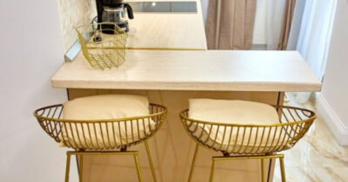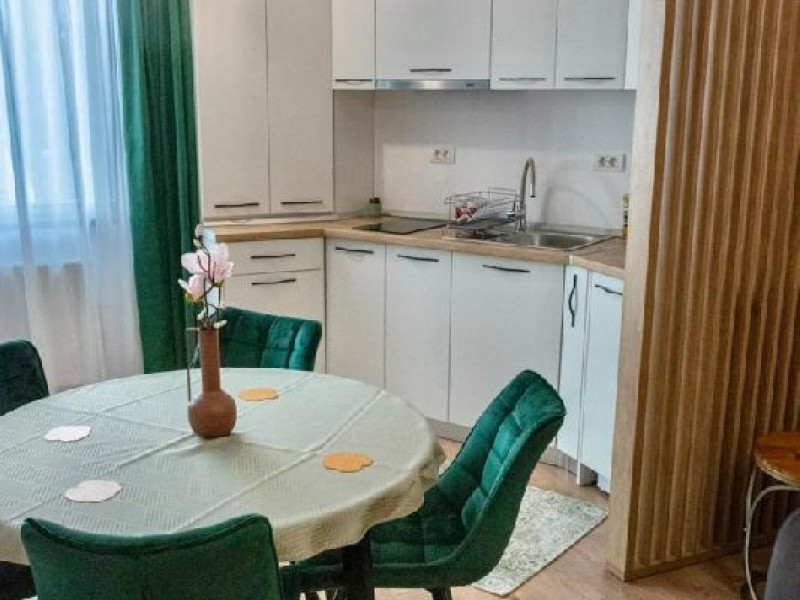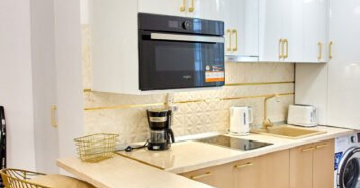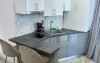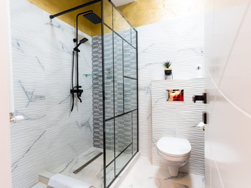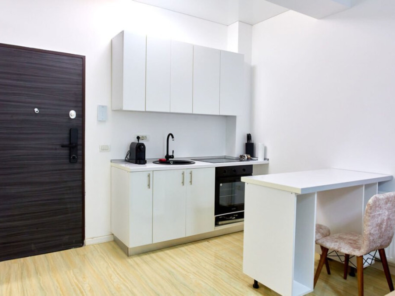 Apartament Gold House Stefan Resort are un dormitor cu pat matrimonial, living open space cu bucataria care este complet echipata cu aragaz modern, cuptor cu microunde, frigider, baia dotata cu cabina de dus, balcon spatios cu vedere laterala la mare, tv, wifi, aer conditionat.