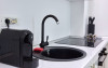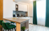 Apartament Aqua Viva Stefan Resort are domitor cu pat matrimonial, living open space cu bucataria complet utilata, zona de servit masa, baie proprie cu cabina de dus, masina de spalat, balcon cu vedere laterala la mare, aer conditionat, tv, wifi. fi.