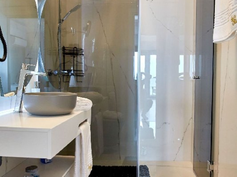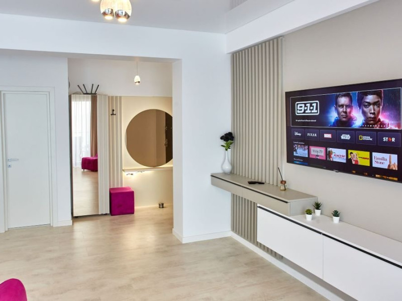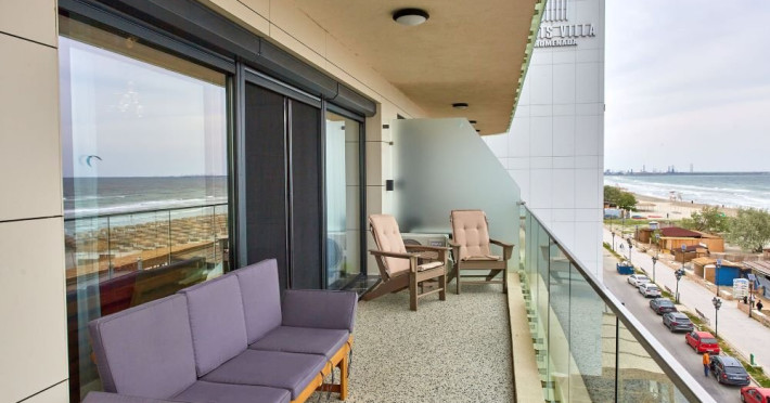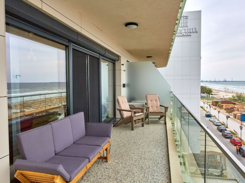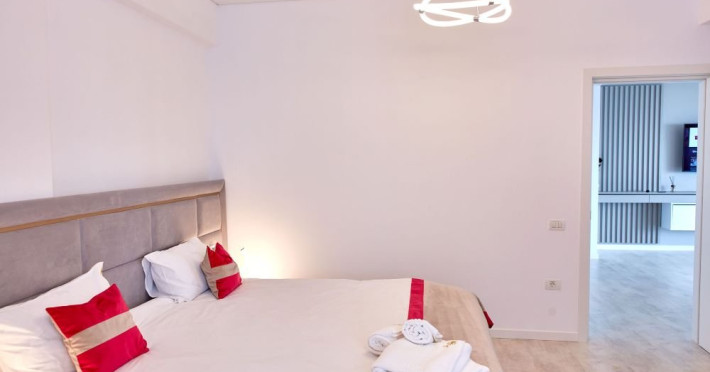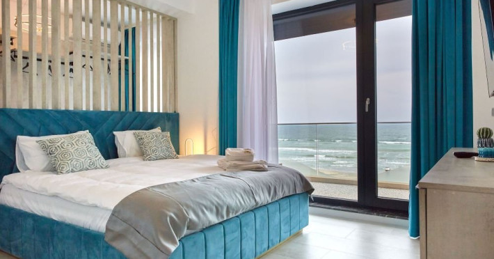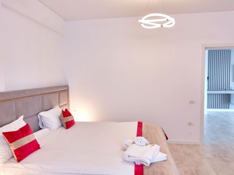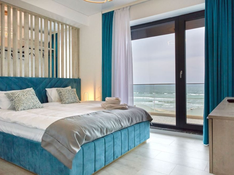 RA Luxury Suite Stefan Resort are doua dormitoare cu pat matrimonial, tv, sifonier, living open space cu canapea extensibila si vedere directa catre mare, bucataria dotata cu o plita moderna, aragaz, frigider incorporat si vesela, baia dotata cu cabina de dus, balconul dotat cu mobilier.