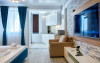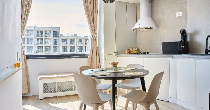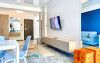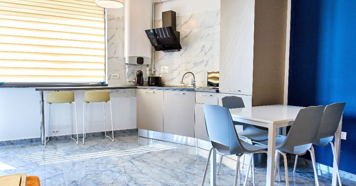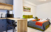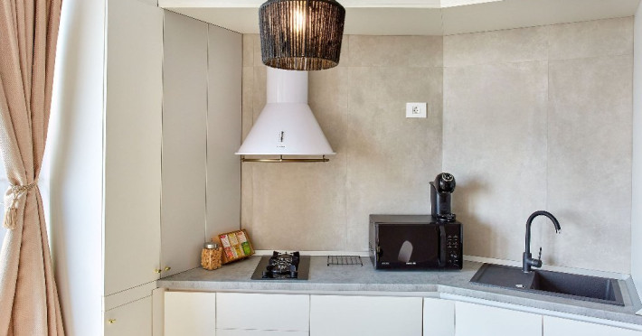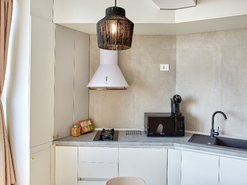 Bucura-te de mese delicioase: zona de bucatarie este amenajata cu un colt de luat masa, dotat cu un coltar confortabil si scaune elegante. Aici veti gasi tot ce aveti nevoie pentru a pregati cele mai delicioase mese, de la plit si cuptor cu microunde la aparat de cafea si frigider.