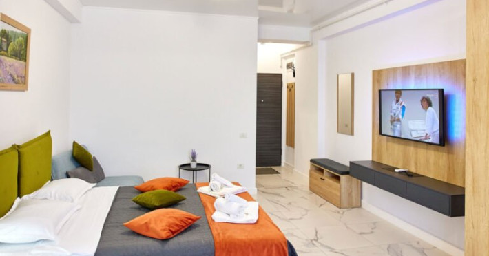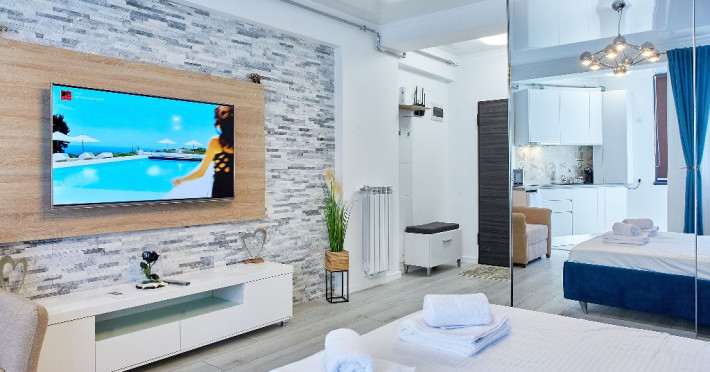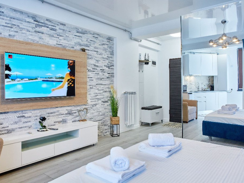 Deasemenea, in apartament se regaseste aer conditionat pentru zilele toride de vara, smart Tv cu o gama larga de posturi, wi-fi de cea mai buna calitate.