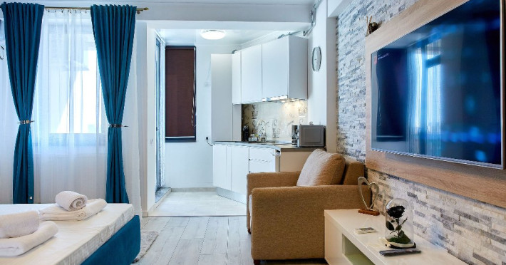 Proprietatea este formata din 2 camere spatioase, cu pat matrimonial in dormitor, canapea extensibila in living, 2 smart TV, dressing, baie si bucatarie.